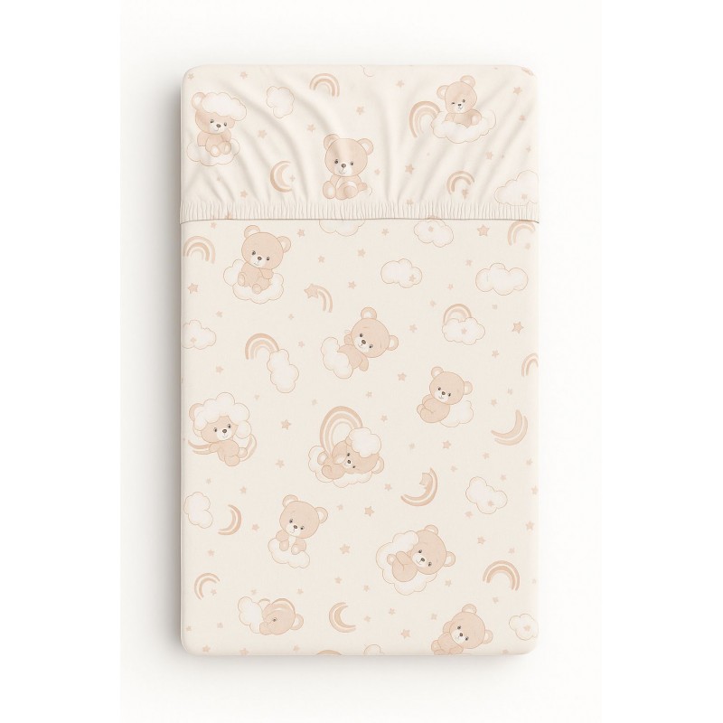 Kummiga voodilina 120x60 cm, Rainbow beige bear