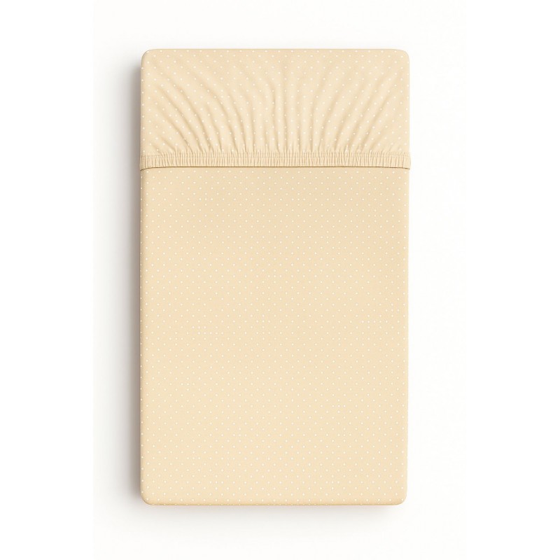 Kummiga voodilina 120x60 cm, valged täpid beežil
