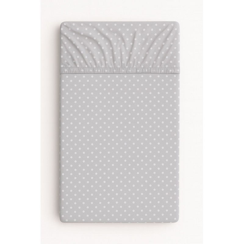 Kummiga voodilina 120x60 cm, valged täpid hallil