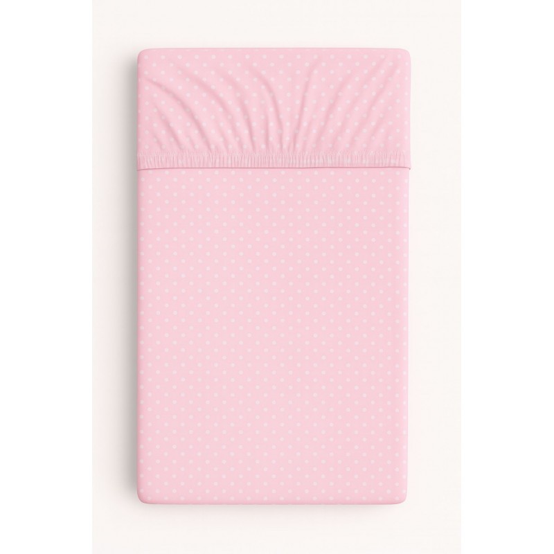 Kummiga voodilina 120x60 cm, valged täpid roosal
