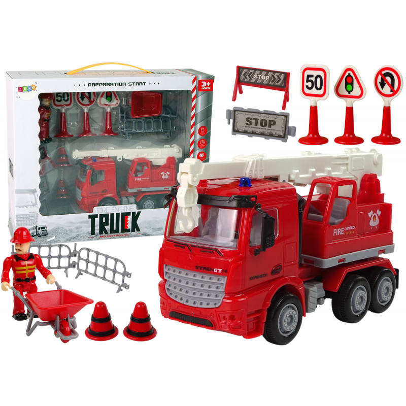 Tuletõrjekomplekti kraana teeviidad Tuletõrjuja transporti vajab iga päästemeeskond. Kõik sõidukid võimaldavad väikesel tuletõrjujal päästa inimesi või kaisukarusid. Punane tuletõrjeauto võimaldab teie lapsel tunda end tõelise tuletõrjujana ja liikuda päästetööde maailma. Kraana kujul oleval tuletõrjeautol on pöörlev kabiin, seega juurdepääs on igast küljest. Kogu asi on väikseima detailini suurepäraselt reprodutseeritud. Valmistatud täielikult plastikust, mis tagab vastupidavuse. Nende tuletõrjeautode versioonide puhul pole ükski päästeoperatsioon kohutav. Märke saab kasutada tee tähistamiseks, millel autod sõidavad, või märgistamiseks. Kas keegi vajab abi? On aeg valida, millise sõidukiga päästeoperatsioonile sõita. Komplekti elemendid: - liiklusmärgid - tuletõrje - tuletõrjuja kujuke - tõkked Auto mõõdud: 16 cm x 8 cm x 10 cm Tegelaste mõõdud: 8 cm takistus: 11 cm x 2 cm x 6 cm Pakendi mõõdud: 30 cm x 25 cm x 9 cm Sõidukite komplekt on mõeldud üle 3-aastastele lastele. Komplekt on CE sertifikaadiga ja vastab standardile EN 71. Autod on pakendatud läbipaistva vitriiniga pappkarpi, mistõttu sobivad ideaalselt kingituseks.
