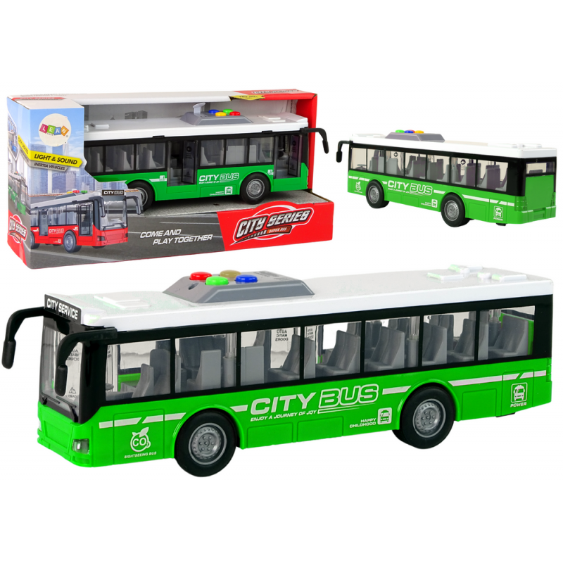 AKUBUSSI SÕIT ROHELINE 1:16 Avastage interaktiivne hõõrdeajamiga buss, mis pakub tundide kaupa põnevat lõbu! See realistlikult reprodutseeritud mudel rõõmustab valgus- ja heliefektide, avanevate uste ja hõõrdeajamiga, tänu millele liigub peale lükkamist iseseisvalt edasi. Bussi disainimisel on pööratud tähelepanu detailidele ning selle kompaktsed mõõtmed (28 cm x 6 cm x 9 cm) muudavad selle käes hoidmise ja manööverdamise lihtsaks. Tänu kummirehvidele liigub see sujuvalt erinevatel pindadel ning valgustatud salong lisab sellele veelgi realistlikumat välimust. Sõiduki katusel on neli nuppu, mis aktiveerivad autentseid helisid, nagu helinad, tagurdamise signaalid ja muud päris bussidest tuntud helid. Tänu avanevatele ustele saavad lapsed lavastada realistlikke stseene reisijate peale- ja mahatulekust, mis lisaks arendab loovust ja kujutlusvõimet. Buss on akutoitel (kaasas), nii et lõbu võib alata kohe pärast lahtipakkimist! Esteetilisesse karpi (32 cm x 9 cm x 14 cm) pakitud sobib suurepäraselt kingituseks. SPETSIFIKATSIOON: Efektid: Tuled, helid, hõõrdeajam Ajam: Hõõrdumine (tõmmake ja vabastage) Toide: Patareid (kaasas) Materjal: Kvaliteetne plast, kummirehvid Bussi mõõdud: 28 cm x 6 cm x 9 cm Pakendi mõõdud: 32 cm x 9 cm x 14 cm KOMPLEKT Built-heliefektid SISUKORD: Patareid
