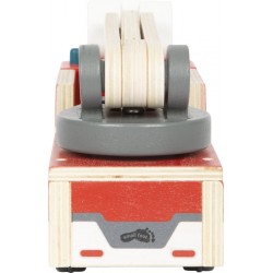 See puidust tuletõrjeauto on ideaalne sõiduk noortele tuletõrjujatele. Pööratava, 360 kraadi keerleva ja pikendatava redeliga saavad lapsed läbi mängida klassikalisi tulekustutusstseene, kus nad ulatuvad kõrgele õhus asuvate tulekahjude juurde ja kustutavad neid. Pöörleva redeli otsas olevat ämbrit saab käsivändaga hõlpsalt juhtida, et läbi mängida inimeste või loomade päästmist. Kummeeritud, vaikselt veerevad rehvid tagavad, et veoauto liigub vaikselt ja õrnalt ning tugevad turvavardad hoiavad pöörleva redeli stabiilsena. See tuletõrjeauto jätab oma stabiilsuse ja mitmekülgse mängulisusega tugeva mulje, muutes selle kohustuslikuks igas lasteaia mänguautopargis.