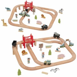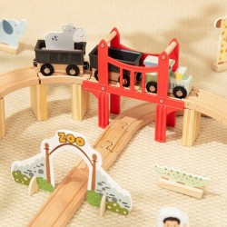 Kutsume teid põnevale teekonnale läbi loomaaia, mis on täis võluvaid elanikke! See Woopie Greeni puidust rongikomplekt on palju enamat kui lihtsalt mänguasi – see on värav kujutlusvõime maailma, kus iga rongisõit muutub ainulaadseks seikluseks. Tugevad rööpad ühenduvad mitmesugusteks konfiguratsioonideks ning punane loomaaiavärav ja sild muudavad lõbu veelgi nauditavamaks. Rong, mille vagunid on magnetitega ühendatud, sõidab mööda puidust rööpaid, külastades kaelkirjakut, elevanti, lõvi, sebrat ja teisi loomi. Lapsed ehitavad ise rööpa, korraldavad stseene ja loovad oma lugusid – see on puhas rõõm ja loominguline mäng, mis köidab neid tundideks.