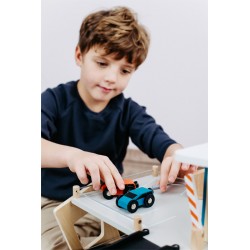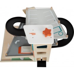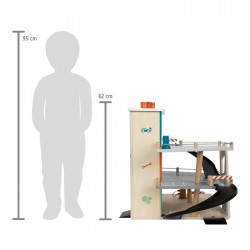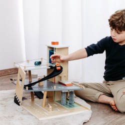 See parkla jätab imelise mulje rohke nähtava puitmaterjali ja moodsa seguga summutatud, trendikatest värvidest ning dünaamilistest disainielementidest, mis aitavad kaasa autode kiirusele kaldteedel. Keskkonnategurite arvestamiseks tootmise ajal valiti materjalisäästlik paigutus, mis väldib tootmise käigus jäätmeid. Kuna sellel parkla on ühenduspunktid ja sissesõiduteed, saab seda kombineerida tavaliste puidust mängurongirööbaste või väikeste jalakäijate tänavaelementidega ja seeläbi integreerida olemasolevatesse mängumaailmadesse. See on teie mänguautode kollektsiooni absoluutne esiletõst!