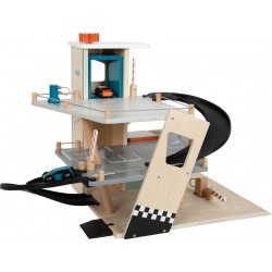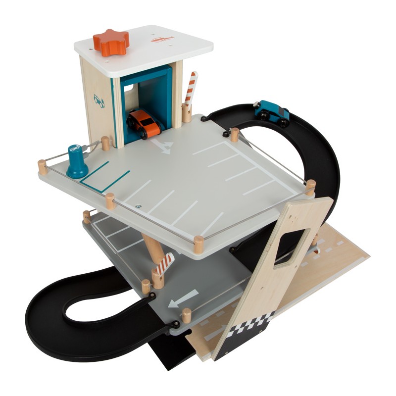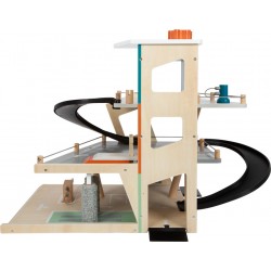 Siin on kõik kiiruse küsimus! Parkimine, bensiinipaagi täitmine, pesemine, remont – ja siis on aeg parkla kaldteedele kihutada! Kaldteede mattpind annab autentse asfaldi ilme. Kaht komplekti kuuluvat autot saab garaažis parkida kolmel tasandil, kui nad ei tangi magnetilise bensiinipumba juures ega lae elektriautode laadimisjaamas. Enne kui autod liikuvate pesurullikutega autopesulast läbi sõidavad, saab kõike autoremonditöökojas kõrgusega reguleeritava tõstukiga üle vaadata! Garaažitasandite vahel liikuvat autotõstukit juhitakse suure käsirattaga ning lukustusmehhanism ja ribiline põrandapind tagavad autode ohutu kohalejõudmise. Paindlikke kummist põrkeraudu saab kasutada ka autode katapuldina. Lifti katusel on helikopteri maandumisplats!