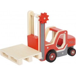 See puidust kahveltõstuk parandab laste motoorseid oskusi (eriti käe-silma koordinatsiooni) kaubaaluse laadimise ja mahalaadimise ajal. Laadimiskahvlit saab rihmaratta abil täpselt soovitud asendisse viia. Kummeeritud rehvid tagavad vaikse veeremise, mis on suurepärane nii täiskasvanutele kui ka lastele. Selle kahveltõstukiga mängimine inspireerib ka loomingulist rollimängu ja toetab laste sotsiaalseid oskusi, kui nad planeerivad ja teevad koos oma logistikaprojekte.