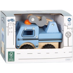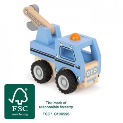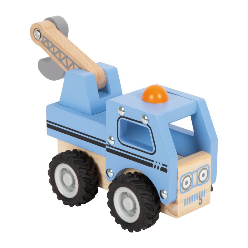 See FSC® 100% sertifitseeritud puidust valmistatud puksiirauto on vastupidavatel kummist ratastel tegutsemisvalmis, kui järgmine puksiirtöö kätte jõuab. Liikuva laadurkraanaga, mille konksu saab kasutada pukseerimisvahendina, on lastetoas palju võimalusi loominguliseks ja realistlikuks rollimänguks. Tänu ümaratele servadele ja aknaavadele on väikeste laste kätel seda ka lihtne haarata ja ringi liigutada.