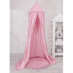 Efektiivne pikalt rippuv baldahhiin. Ilus element lastetuppa. Seda saab kasutada beebivoodi unikaalse kaunistusena, samuti võib see luua suurepärase mängukoha. Voodi kohal rippumine kaitseb liigse valguse ja müra eest, luues hubase ja turvalise puhkekoha võrevoodis. Baldahiini saab hõlpsasti lakke kinnitada. Pikkus 260 cm võimaldab paigutada otsad põrandale. See loob täiusliku peidupaiga ja mänguväljaku suurematele lastele. Varikatus on valmistatud ökotexi sertifikaadiga, 100% puuvillasest kangast. Külgedel on praktilised paelad baldahhiini sidumiseks ja kauni telgi loomiseks. Ülemist rõngast saab eemaldada. Kangas on pestav 30 kraadi juures.