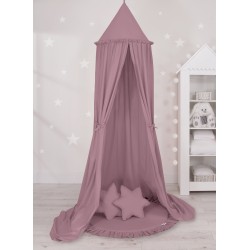 Efektiivne pikalt rippuv baldahhiin. Ilus element lastetuppa. Seda saab kasutada beebivoodi unikaalse kaunistusena, samuti võib see luua suurepärase mängukoha. Voodi kohal rippumine kaitseb liigse valguse ja müra eest, luues hubase ja turvalise puhkekoha võrevoodis. Baldahiini saab hõlpsasti lakke kinnitada. Pikkus 260 cm võimaldab paigutada otsad põrandale. See loob täiusliku peidupaiga ja mänguväljaku suurematele lastele. Varikatus on valmistatud ökotexi sertifikaadiga, 100% puuvillasest kangast. Külgedel on praktilised paelad baldahhiini sidumiseks ja kauni telgi loomiseks. Ülemist rõngast saab eemaldada. Kangas on pestav 30 kraadi juures.