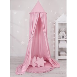 Efektiivne pikalt rippuv baldahhiin. Ilus element lastetuppa. Seda saab kasutada beebivoodi unikaalse kaunistusena, samuti võib see luua suurepärase mängukoha. Voodi kohal rippumine kaitseb liigse valguse ja müra eest, luues hubase ja turvalise puhkekoha võrevoodis. Baldahiini saab hõlpsasti lakke kinnitada. Pikkus 260 cm võimaldab paigutada otsad põrandale. See loob täiusliku peidupaiga ja mänguväljaku suurematele lastele. Varikatus on valmistatud ökotexi sertifikaadiga, 100% puuvillasest kangast. Külgedel on praktilised paelad baldahhiini sidumiseks ja kauni telgi loomiseks. Ülemist rõngast saab eemaldada. Kangas on pestav 30 kraadi juures.