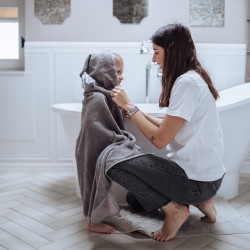 Vannilina Bamboo Soft on iga perekodu kohustuslik ese. Täiuslikult valmistatud, pehme ja ülimalt imav – sobib suurepäraselt igapäevaseks vannistamiseks, samuti rannas või basseinis. *Sellel on praktiline kapuuts, mis kaitseb pead külma eest.  *Rätil on äärde õmmeldud rihm, mille vanemad saavad kaela panna. See hoiab ära pritsimise vannitamise ajal ning annab kätele vabaduse last pühkida, kanda ja kaisutada.  *Kanga koostis on 60% bambus ja 40% polüester. Sisemine pool, mis puutub vahetult kokku beebi nahaga, on valmistatud kvaliteetsest bambuslõngast: õrn, nahale pehme. See imab vett 60% rohkem kui puuvill, neelab ebameeldivaid lõhnu. Väliskülg on valmistatud polüesterkiududest, mis on katsudes väga meeldiv ja pehme.   Kõik meie käterätikud ja hommikumantlid on käsitsi õmmeldud Türgis, järgides kõrgeimaid kvaliteedistandardeid, pöörates tähelepanu detailidele ja kasutades parima kvaliteediga materjale.   Meil on kahes suuruses rätikuid.  Iga rätiku saab sobitada meie vannikollektsiooni hommikumantliga.