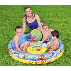 Lastebassein + rannapall + ujumisrõngas = fantastiline veemängukomplekt. Kuid see pole veel kõik, lisaks on sellel komplektil imearmas graafika, mis esindab veealust maailma ja selle armsaid elanikke.