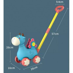 Sinine lehmalükkaja on ideaalne õppevahend teie lapsele. Lapsed saavad kõndimist harjutada oma lemmiklehma lükates. Sellel lükkamismänguasjal on palju omadusi, mis lastele rõõmu pakuvad. Lehm puhub mulle – lihtsalt keerake seebianum põhja (kaks anumat on komplektis). Mullid tulevad lehma suust välja. Sellel on õppimiseks ketrusratas tähestiku tähtedega (A, B ja C). Kõige selle juurde kuuluvad imelised meloodiad, mida saab nupuvajutusega sisse ja välja lülitada. See mänguasi aitab arendada teie lapse koordinatsiooni, motoorseid oskusi, kõndimisoskusi ja võimaldab tal teha esimesi samme tähestiku õppimisel.