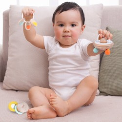 Kosmoselaeva kujuline mänguasi võimaldab mängida nii beebidel kui ka veidi vanematel lastel. Esialgu saab seda kasutada kõristina, mis teeb raputamisel meeldivat häält, rahustades last.