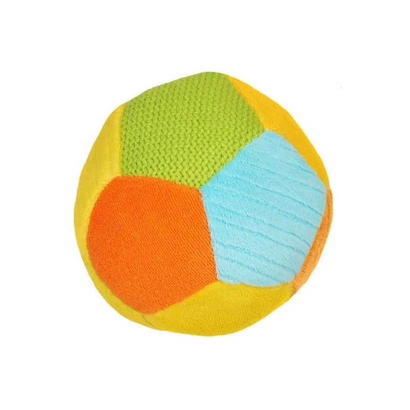 Geomeetriliste viisnurkadena paigutatud mitmekesised, kontrastsed värvid teravustavad lapse nägemist ja aitavad värve eristada ning mänguasja sees oleva kellukese peen heli ergutab mängimist. Palli pehmus julgustab seda haarama ja ühest käest teise liigutama.