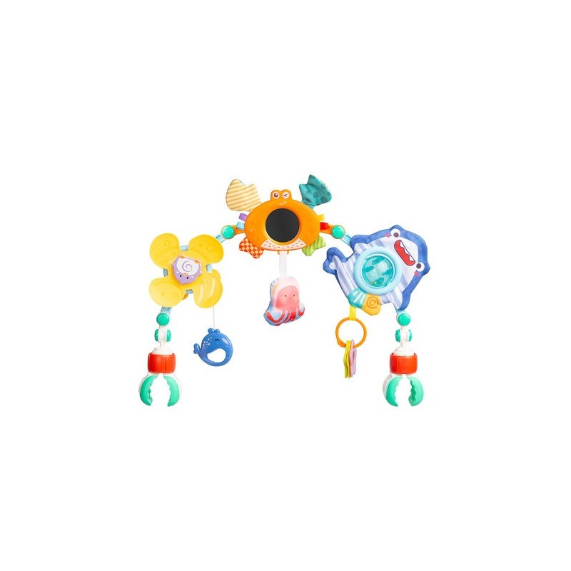 Toyzi reguleeritav käruvars pakub teie pisikesele palju lõbu ja arengut. Sellel on mitmesuguseid temaatilistest loomadest inspireeritud mänguasju, mis ergutavad beebi uudishimu, äratades temas uudishimu, sealhulgas: kõristi, peegel, pöörlev ventilaator, käepidemed ja sahisevad kangad. Tänu painduvale ja painutatavale kinnitusele ja riietele saab peavõru hõlpsasti kinnitada mitte ainult käru külge, vaid ka peaaegu kõikjale (turvahäll, kiik, hüppelaud, söögitool või võrevoodi).