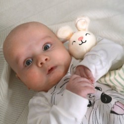 - Kontrastne plüüsist pall – treenib haarde-, nägemis- ja motoorseid oskusi kõhuli lamades.