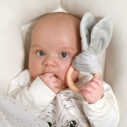 - Puidust keskkonnasõbralik närimisrõngas "Jänes" – rahustab valutavaid igemeid ja toetab kompimismeele arengut.