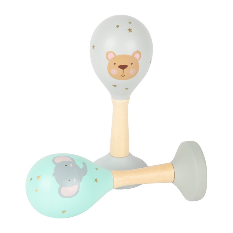 Kuulake! Marakad on ideaalsed muusikalised kõristid beebidele ja väikelastele. Tänu oma mõnusale kujule saavad väikesed käed neid eriti hästi haarata. Tugev puit ja pehmed pastelsed värvid muudavad need beebikõristid tõeliseks pilgupüüdjaks, mis äratavad laste uudishimu ja edendavad samal ajal nende akustilise taju arengut.