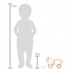 See armas puidust kokkutõmmatav jänku, mille kõrvad ja liikuvad jalad näevad välja nagu hüppavad, on ideaalne kaaslane noortele avastajatele, kes teevad esimesi samme või hakkavad roomama. Kohevad, kortsus kõrvad pakuvad sensoorset ja akustilist stimulatsiooni, samas kui küüliku liikuvad jalad jätavad mulje, nagu oleks see tõeliselt elus. Kummeeritud rattad võimaldavad vaikset, põrandat kaitsvat edasiliikumist, mistõttu on see ideaalne noortele algajatele jalutajatele! See puidust kokkutõmmatav jänku mitte ainult ei soodusta motoorsete oskuste ja liikuvuse arengut, vaid julgustab ka väikelapsi lõbutsedes roomama ja kõndima. Ja see on eriti praktiline: plüüsist elemente saab eemaldada ja pesta.
