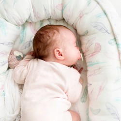 Premium beebipesa, bambus/luxe minky, Heavenly feathers/valge