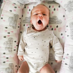 Kahtepidi kasutatav beebipesa on valmistatud kahest suurepärasest, materjalist naturaalne 100% bambus ning imepehme minky kangas. Bambus on pehme, naturaalne ning ideaalne kuumadeks ilmadeks. Minky kangas on aga mõnus soe külmadel ilmadel. Sisu on anti allergiline.