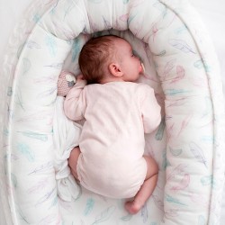 Kahtepidi kasutatav beebipesa on valmistatud kahest suurepärasest, materjalist naturaalne 100% bambus ning imepehme minky kangas. Bambus on pehme, naturaalne ning ideaalne kuumadeks ilmadeks. Minky kangas on aga mõnus soe külmadel ilmadel. Sisu on anti allergiline.