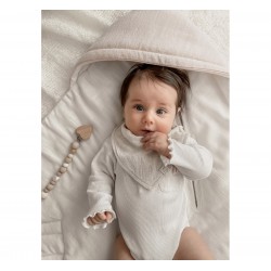 Ilus ilm julgustab jalutama. Kui palja kaela jaoks on liiga külm ja paksu salli jaoks liiga soe, sobib meie sall ideaalselt. Lisaks kaitseb see riideid hammaste tuleku ajal, kui beebil on tugev ila.