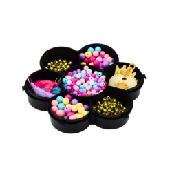 Käevõru valmistamise komplekt konteineri helmed ripatsid Käevõru valmistamise komplekt on tõeline aardelaek noortele loojatele, kes soovivad väljendada oma unikaalsust ainulaadsete ehete loomisega. Erinevates värvitoonides ja suurustes helmeste rohkus avab ukse piiramatutele disainivõimalustele. Puidust ripatsid lisavad igale käevõrule iseloomu ja isikupära. Käevõrude aluseks olevad nöörid ja õngenöör võimaldavad katsetada erinevaid punumis- ja keermetehnikaid, soodustades loovust ja täpsust. Kogu asi on hoolikalt pakitud lillekujulisse anumasse, mis mitte ainult ei hõlbusta helmeste hoiustamist, vaid lisab ka võlu ja esteetikat. Käevõrude loomine pole mitte ainult lõbus, vaid ka kannatlikkuse, keskendumisvõime ja käeliste oskuste õppimise protsess. Samuti on see võimalus arendada oma kujutlusvõimet ning luua midagi ainulaadset ja oma. See komplekt annab teile võimaluse veeta tunde sõprade ja õdede-vendadega luues, vesteldes ja ideid jagades. Ideaalne kingitus väikestele kunstnikele, kes soovivad end ehtekunsti kaudu väljendada. Helmekonteineri mõõdud: 14cm x 14cm x 2,5cm Pakendi suurus: 25cm x 19cm x 5cm On CE sertifikaat ja vastab EN71 standardile. Mõeldud üle 6-aastastele lastele.