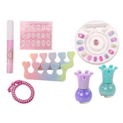 Kosmeetikakomplekt küünekohvris Meigikohver Lilla 9 tükki ⭐Lillasse ratastega kohvrisse pakitud võluv meigi- ja küünekaunistuste komplekt lastele, mis sobib suurepäraselt reisile kaasa võtmiseks! Sisaldab 9 elementi, mis võimaldavad väikestel kunstnikel luua maagilisi stiile ja mängida kosmeetikamaailmas. ⭐ TOOTE PEAMISED OMADUSED✅ 9 elemendist koosnev komplekt Sisaldab kõike, mida laps vajab küüntele kaunite kujunduste loomiseks ja ilule sära lisamiseks. ✅ Otsikute palett12 erinevat värvi ja suurusega otsikut, mis sobivad ideaalselt laste küüntega. ✅ Pitsimütsidega küünelakid Lilla ja roheline küünelakk võluvate kroonikujuliste korkidega, mis lisavad ainulaadset võlu.✅ Huuleläige, küüneviil ja tarvikudKomplekti kuuluvad huuleläige, küüneviil, juuksepael ja küünekleebised loominguliseks mänguks. ⭐ SPETSIFIKATSIOONPaki mõõdud: 27 cm x 30 cm x 8 cmSertifikaadid ja ohutusstandardid: CE, EN71Kasutaja vanus: üle 3 aasta ⭐ KOMPLEKT SISUKORD Otsapalett2 kosmeetikaeraldajatJuuksepaelKüünekleebised2 küünelakid ViilLäige⭐ LÕBUSALUS ja Küüne kaunistus ühes TÄIENDAV EELIS ja Küüne kaunistus. Ideaalne mängukomplekt, mis arendab kujutlusvõimet ja paneb lapse tundma end tõelise kunstnikuna.