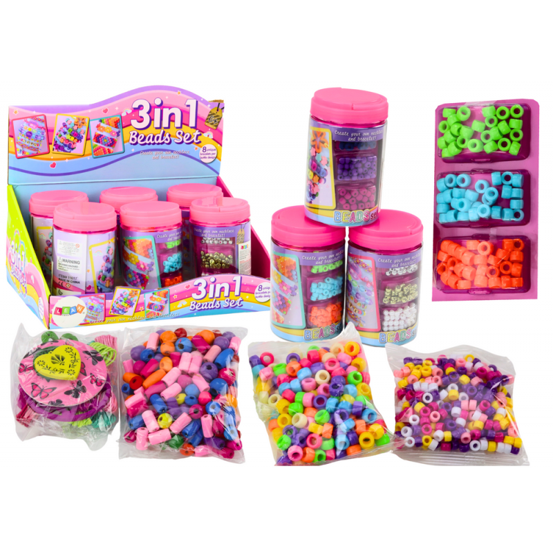 Helmeste komplekt purgis ehete loomiseks 3in1 Helmeste komplekt purgis on tõeline inspiratsiooniallikas väikestele kunstnikele. Purgis on rikkalikult värvilisi helmeid – koguni 5 erineva kuju ja tekstuuri komplekti, mis võimaldab luua erinevaid mustreid ja kompositsioone. Lisaks sisaldab komplekt erinevaid 4 erinevat värvi ripatsit ja niiti, mis annab lastele täieliku vabaduse oma loovust väljendada. Iga tükk on hoolikalt valitud, et anda lastele võimalus luua isikupäraseid ehteid, mis peegeldavad nende endi stiili ja isikupära. Tänu sellele õpivad lapsed mitte ainult end kunsti kaudu väljendama, vaid arendavad ka käelisi oskusi, keskendumisvõimet ja kannatlikkust. Ehete loomine pole mitte ainult lõbus, vaid ka loominguline protsess, mis arendab kujutlusvõimet ja probleemide lahendamise oskusi. Lapsed saavad katsetada erinevaid mustreid ja tehnikaid, võimaldades neil avastada enda andeid ja kirgi. Helmeste komplekt purgis pole mitte ainult suurepärane meelelahutus, vaid ka väärtuslik õppimis- ja arenguvorm lastele. Kollektiivpakendis on 6 tk. Mänguasjad müüakse eraldi. Purgi mõõdud: 12cm x 7,5cm x 7,5cm Kollektiivse pakendi mõõdud: 29,5cm x 21cm x 13cm See on CE sertifikaadiga ja vastab EN71 standardile. Mõeldud üle 6-aastastele lastele.