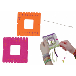 DIY EHTEVALMISTAMISKOMPLEKT Iga väike fashionista armastab ise aksessuaare luua ning see käevõrude valmistamise komplekt võimaldab tal iseseisvalt unikaalseid ehteid kujundada ja luua. Tänu erinevat värvi hambaniidile, helmestele ja spetsiaalsele punumisseadmele saab teie laps valmistada moekaid ja stiilseid käevõrusid, mis sobivad igaks elujuhtumiks. Oma kaunistuste loomine võimaldab teil väljendada oma stiili ja muudab ehete isikupärase iseloomu. Oma ehete loomine pole mitte ainult lõbus, vaid ka võimalus arendada käelisi oskusi, täpsust ja kannatlikkust. Keerukate palmikute tegemine nõuab keskendumist ja motoorset koordinatsiooni, mis mõjub positiivselt lapse arengule. Komplekt sisaldab samm-sammult piltidega õpetust, mis selgitab, kuidas ehteid valmistada, et teie laps saaks õppida erinevaid punumis- ja ehete kujundamise tehnikaid. Värviline hambaniit võimaldab luua mitmevärvilisi ainulaadseid mustreid ning kaasasolevad helmed võimaldavad käevõrusid täiendavalt kaunistada. Spetsiaalne punumisketas teeb keeruliste punutiste tegemise lihtsaks ka algajatel ning ergonoomilised nõelad teevad niitide täpse punumise lihtsaks. See pole mitte ainult loominguline lõbu, vaid ka suurepärane võimalus sõprade või perega aega veeta, koos ehteid luua ja mõtteid vahetada. SPETSIFIKATSIOON: Materjal: Plastik, kangas Punuketta mõõdud: 10 cm x 10 cm x 1 cm Komplekti mõõdud: 23 cm x 12 cm x 3 cm Funktsioonid: Ehete loomine, loovuse ja käeliste oskuste arendamine KOMPLEKTI SISU: Punuketas 2 punumisnõela 12 tk.