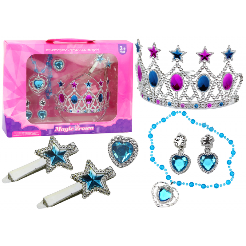 Väikese printsessi kroonkõrvarõngaste kaelakee-sõrmusklambrite komplekt Väikese printsessi komplekt on erakordne kollektsioon, mis täidab iga väikese tüdruku unistused kuninglikust elegantsist. Komplektis on kroon, mis on kaunistatud kahes võluvas värvitoonis: sinine ja roosa, imitatsiooniga teemandid. See kroon mitte ainult ei lisa sära, vaid muutub ka ainulaadsuse sümboliks, mida iga väike printsess tunda soovib. Komplekti kuuluvad ka kaunid kõrvarõngad, mis õrnalt sädelevad, aga ka elegantne sõrmus ja kaelakee, mis viimistlevad kuningliku välimusega. Stiili täiendamiseks on komplektis ka kaks juukseklambrit, mis võimaldavad luua veelgi armsamaid soenguid. Selle komplekti iga element on hoolikalt valmistatud, pöörates tähelepanu detailidele, et pakkuda teie lapsele kõrgeima kvaliteediga ja autentset kogemust. Tänu sellele mänguasjale saab väike printsess mängida tõelise kuninganna rolli, lõbutsedes ning luues maagilisi lugusid täis elegantsi ja rafineeritud stiili. Väikese printsessi komplekt mitte ainult ei paku meelelahutust, vaid arendab ka lapse kujutlusvõimet, loovust ja esteetikatunnet. See on ideaalne mänguasi igale väikesele muinasjuttude ja maagiat ja võlu täis maailmade armastajale. Pakendi suurus: 26cm x 18,5cm x 7cm Sellel on CE sertifikaat ja see vastab EN71 standardile. Mõeldud üle 3-aastastele lastele.