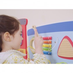 Värviline mängurong Viga Toys on puidust multifunktsionaalne seinamänguasi, mis pakub lastele palju tunde lõbusalt ja õppimiseks. Mänguasi koosneb kolmest eraldi sektsioonist: punane hammasratastega vedur, veskiratas ja peegel; sinine vagun taldrikute, mootoriaasa ja helmeheitjaga; ja roheline vagun koos interaktiivse libiseva rongi ja plokkidega, mis tähistavad kuulsaid kohti. Iga sektsioon pakub erinevaid atraktsioone, mis stimuleerivad väikelaste meeli ja oskusi, pakkudes neile samas palju rõõmu.