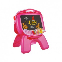 Kahepoolsed tahvlid kriitpliiatsid Stand Projektor Pictures Roosa Multifunktsionaalne kriiditahvel koos ps-alusega Projektor Pictures Markerite ümberkorraldatavus teeb õnnelikuks iga lapse, kes armastab joonistada. See arendab tema kunstimeelt, kujutlusvõimet, käefunktsioone ja täpsust. Tahvlile joonistamine avaldab lapse arengule väga positiivset mõju. Tahvel on väga kenasti ja hoolikalt tehtud, käib kahelt poolt välja. Kaks pinda joonistamiseks - valge, mõeldud kustutatavate markerite kasutamiseks ja must, millele saab kriidiga joonistada. Seda saab paigutada ruumi kõikjale. Lisaks on sellel sahtlid, kuhu saab panna markereid, kriiti või kuvatavaid pilte. Tahvli peale asetatud projektor kuvab erinevaid pilte loomade ja tegelastega, mida saab tahvli pinnale joonistada. Kaasasolevad mallid õpetavad teie lapsele geomeetriliste kujundite õigeid nimetusi ja tähti kirjutama. Palju kasu ja lõbu! Komplekti elemendid: - projektor - 36 pildimalli, - 6 piltidega ketast, - 12 värvilist markerit, - 12 värvilist kriiti - geomeetriliste kujunditega šabloon - tähešabloon - marker, mis valgustades näitab, mida te joonistasite Tahvli mõõdud: 31 cm x 15 cm Projekti pind x 42 cm:1 5 cm2 cm1 x 42 cm:1 23 cm Pakendi mõõdud: 44 cm x 31 cm x 8 cm Projektori toiteallikaks on 4 AA 1,5V patareid, mis ei kuulu komplekti. Pliiats aga saab toite kolmest LR41-st, mis kuuluvad komplekti. Need sisestatakse projektorisse, et see saaks korralikult töötada. Mänguasi on valmistatud ohututest, sertifitseeritud materjalidest, mis aitavad kaasa selle pikale elueale ja vastupidavusele. Laud toetub jalgadele, mille kõrgus on kohandatud väikelaste keskmise pikkusega. Kõik komplekti kuuluvad elemendid on CE-sertifikaadiga. Projektoriga laud on pakitud suurde värvilisse karpi, mis aitab mänguasja transportida.