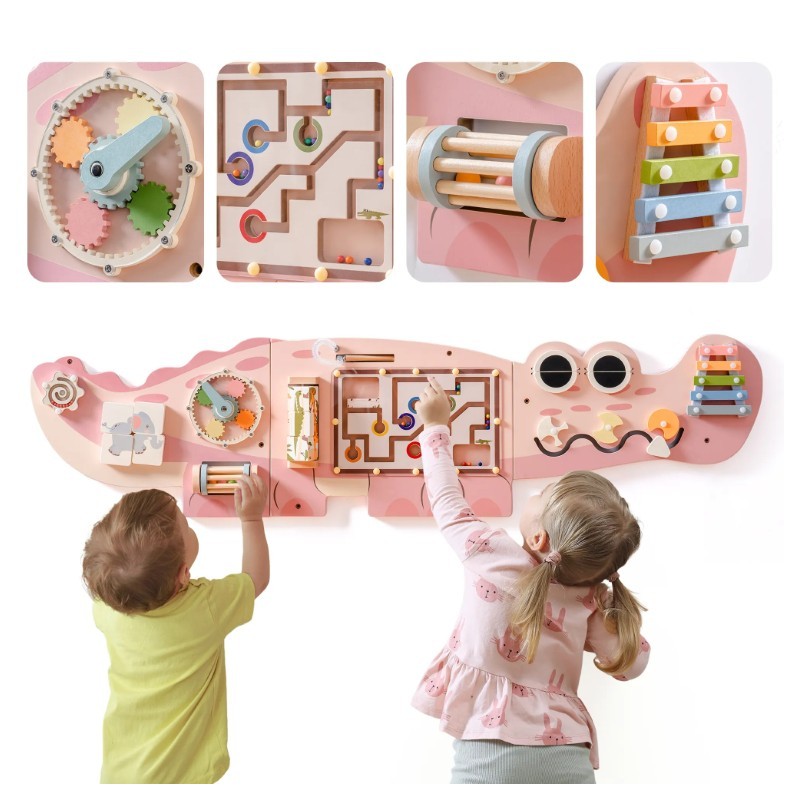 Ruumisäästlik ja mitmekülgne – Selle tegelustahvli alligaatorikujuline seinale kinnitatav disain sobib ideaalselt väikestesse ruumidesse, võimaldades lastel nautida laia valikut tegevusi ilma väärtuslikku põrandapinda võtmata. See on mitmekülgne lisa mängutubadesse, lasteaedadesse ja läbimõeldud kingitus lastele.