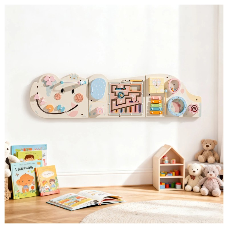 Lihtne paigaldada – Lihtsate paigaldusjuhiste järgi saab seda tegevustahvelt hõlpsalt igale seinale kinnitada. Selle vastupidav konstruktsioon ja kergesti puhastatav pind muudavad hoolduse imelihtsaks, tagades lastele turvalise ja hügieenilise mängukeskkonna.
