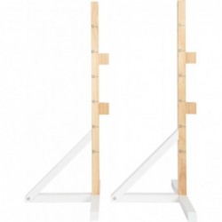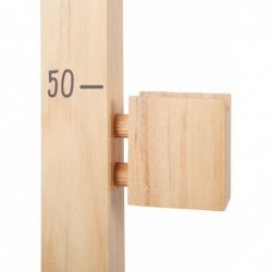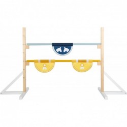 See täispuidust tõkkejooks pakub noortele hobusefännidele palju hüppamisrõõmu, olgu nad siis üksi hüppamas või oma hobihobustega mängides! Tõkke, mis on ehitatud nagu tõeline hobutakistus, on muutuv kõrgus vahemikus 20–70 cm. Kõrguse reguleerimiseks sisestage lihtsalt kaks tõkkepuud soovitud piludesse. Kolm väikest lippu annavad risttalale autentse kaunistuse. Kuna varraste vahe on 87,5 cm, sobib see komplekt ideaalselt hobihobusõiduks. "Hobuse" mängimine ja üle takistuste hüppamine hobihobusega on populaarne ajaviide igas vanuses hobusefännide seas! Ja nagu päris hobusetõkkega ikka, kukub teivas hüppe ajal pihta saades maha! Kahele vardahoidjale on mõlemale küljele trükitud kõrguse mõõdud ja need seisavad tänu täispuidust alustele tugevalt püsti. Ja siin on näpunäide: saate kombineerida mitu takistuste komplekti Cavaletti takistusraja lastele (toode 12397), et teha lastele üks tohutu hüpperada. Kes suudab hüpata üle masti ilma seda maha löömata?