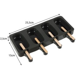 4 JÄÄTIST - silikoonvormil on 4 auku jäätise jaoks. See on suurepärane lahendus erinevate jäätisevärvide maitsete loomiseks. Valage lihtsalt mahl, jogurt või segatud puuviljad ja külmutage. Jäätise eemaldamise hõlbustamiseks valage vorm lihtsalt sooja veega üle.