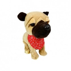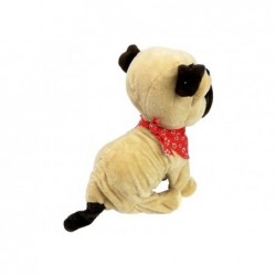 Pruun ja beež rihma otsas koer on valmistatud pehmest ja mittetoksilisest, 100% keskkonnasõbralikust materjalist, mis on väga meeldiv puudutada. Loomal on suured, tumedad silmad, väljaulatuv saba ja suur nina, mis kergelt läigib. Seda kaunistab punane taskurätik, mis annab talle võlu.