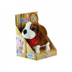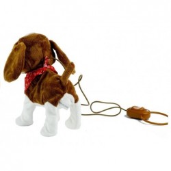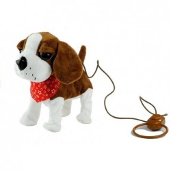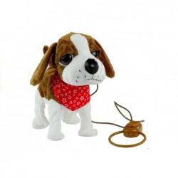 Pruunvalge rihma otsas koer on valmistatud pehmest ja mittetoksilisest, 100% keskkonnasõbralikust materjalist, mis on väga meeldiv puudutada. Loomal on suured, tumedad silmad, väljaulatuv saba ja suur nina, mis kergelt läigib. See on kaunistatud punase taskurätikuga, mis annab talle võlu. Mänguasjal on pikk rihm lülitiga, tänu millele saab laps oma koera hõlpsalt juhtida. See võimalus muudab mängu väga reaalseks ja ennekõike lapse jaoks huvitavaks.