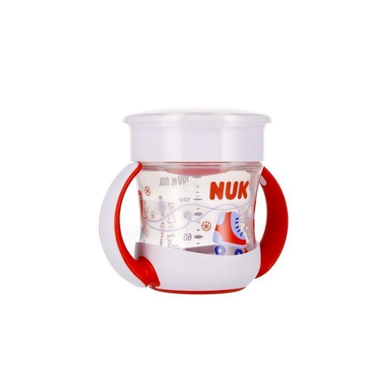 NUK Mini Magic Cup võimaldab isegi pisikestel juua samamoodi nagu suured lapsed. 360° tila võimaldab juua tassi igast küljest – peaaegu nagu tavalisest tassist. On ainult üks maagiline erinevus: tassist ei lähe midagi maha, silikoonkate sulgeb tassi. Joomine on teie lapsele lõbus: kõik, mida ta tegema peab, on tassi äärelt imema hakata. Lisaks on tass väga väike ja hõlpsasti kasutatav. Tänu ergonoomilistele käepidemetele saavad isegi kõige väiksemad sõrmed ja käed seda vaevata hoida. NUK Magic Cup'i kasutamise ajal puhta ja ohutuna hoidmiseks on kaasas kaitsekate. Kruus on valmistatud kvaliteetsetest, vastupidavatest materjalidest, BPA-vabad ja sellele on trükitud armsad motiivid. See koosneb vaid vähestest eraldi osadest, mida saab pärast põhjalikku pesemist hõlpsalt lahti võtta ja uuesti kokku panna. NUK Mini Magic Cup joogikruus ühildub kõigi NUK Evolution seeria elementidega. Kruus mahutavusega 160 ml. Mõõtmed/kaal: toote mõõtmed (kõrgus x laius) [cm]: 10x12, pakendi mõõtmed (kõrgus x laius x sügavus) [cm]: 11x11x9, toote kaal [kg]: 0,11 kg, toote kaal pakendis [kg]: 0,16 kg. Toode on mõeldud lastele vanuses 6 kuud ja rohkem. Pakendatud läbipaistvasse pakendisse.