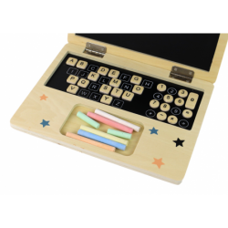 Puidust tahvelarvuti kriit Mänguasja põhielemendiks on ekraanil olev ruum, mis on loodud kriidiga kirjutamiseks. Laps saab ise oma kujutlusvõime järgi joonistusi luua, tähti, numbreid või mida iganes kirjutada. See on interaktiivne lähenemine kirjutamis- ja joonistusoskuste arendamisele. Traditsioonilise klaviatuuri asemel on mänguasjal puidust kuubikud, mida saab klaviatuuril sobivatesse kohtadesse sättida. See on ebatavaline lähenemine tähtede paigutamise õppimisele ja peenmotoorika arendamisele. Vahetu mängimise võimaldamiseks sisaldab komplekt kriiti. Teie laps saab hõlpsasti kustutada ja luua uusi pilte, julgustades loovust ja katsetamist. Ekraan toimib tahvlina, millele laps saab luua erinevaid pilte. See on suurepärane viis oma kujutlusvõime arendamiseks, viies ideid oma meelest füüsilisesse vormi. Komplekt ei paku mitte ainult lõbu, vaid sellel on ka hariv aspekt. Laps saab õppida tähti ja numbreid, samuti arendada kunstilisi ja loogilisi oskusi. Lastel on võimalus luua oma sisu, kombineerides tehnika aspekte (sülearvuti) traditsiooniliste kunstivahenditega (tahvel ja kriit). See on ainulaadne kogemus, mis toetab üheaegselt paljude oskuste arendamist. Mänguasi "Puidust sülearvutitahvel" mitte ainult ei paku meelelahutust, vaid stimuleerib ka loovuse, kirjutamisoskuse, tähtede paigutamise ja lapse kunstiliste võimete arengut. See on suurepärane võimalus ühendada haridus lõbususega. Kokkupandud sülearvuti mõõdud:22cm x 29cm x 3cm Pakendi suurus:31cm x 23cm x 5cm Omab CE sertifikaati ja vastab EN71 standardile. Mõeldud üle 3-aastastele lastele.