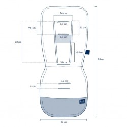 Need kuus ava võimaldavad voodriga sobitada viiepunktivööde süsteemi enamikus jalutuskärudes, sealhulgas mitteeemaldatavate rihmadega. Vertikaalsetel avadel on survevaba Velcro, mis tagab, et vooder püsib paigal ja sobib ideaalselt jalutuskäru istmega.