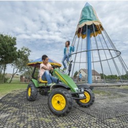 See BERG John Deere Go-kart näitab sind parimaks abiliseks, mida põllumees võib soovida! Muljetavaldavad sügavprofiiliga rehvid ja õõtsuv tel annab teile täiendava haardumise mudas ja hoiavad teid kindlalt maastikul! Ainulaadne BFR-süsteem tähendab, et teil on tagapedaaliga pidur, samas saate hõlpsasti edasi ja tagasi pedaalida. Et mängulusti oleks veel lõbusam, saad selle gokardi varustada paljude toredate lisatarvikutega, nagu näiteks tõstekopp, kaubaaluste kahvel või vilkuv tulega veermik.