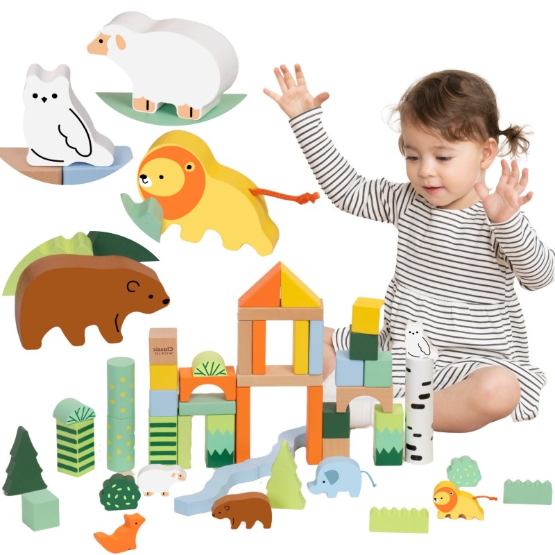 Classic World Metsateemalised puitklotsid on loominguline komplekt, mis viib lapsed metsaseikluste maailma. Tänu erinevatele kujunditele ja värvidele saavad väikelapsed vabalt ehitada oma struktuure, arendades oma kujutlusvõimet ja loovust. Loomade, puude ja looduslike elementide motiivid julgustavad iseseisvat ja koostööd tehes mängima nii kodus kui ka eelkoolis.
