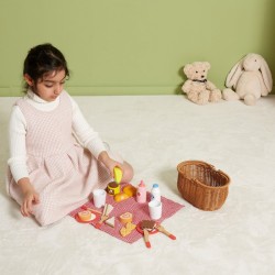 Minge sõpradega lõbusale piknikule VIGA puidust piknikukomplektiga. See kaunis kunstpilliroost korv on täidetud valiku puidust aksessuaaride ja ruudulise kangaga. Tänu tugevatele käepidemetele saab teie laps kogu komplekti hõlpsalt endaga kaasa võtta, kuhu iganes ta läheb. Komplektis olevad puidust suupisted ja aksessuaarid võimaldavad tal kaasa võtta oma lemmikmänguasju, pehmeid mänguloomi või mängida rollimänge sõbraga. See komplekt sobib nii õues kui ka toas mängimiseks. Mõned nõud koosnevad mitmest tükist ja on kinnitatud takjapaelaga. Puust noa abil saab teie laps need tükkideks lõigata, arendades peenmotoorikat. Täiskasvanute jäljendamine aitab kaasa ka sotsiaalsete oskuste arengule.