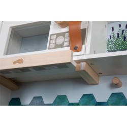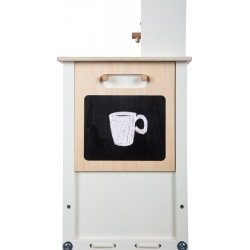 See puidust unistuste köök täidab kõik kokandussoovid! Noored, pürgivad kokad saavad siin tõeliselt õitsele puhkeda, samas kui disainiteadlikud vanemad hindavad köögi moodsat välimust, mis muudab selle ideaalseks mitte ainult lastetuppa, vaid ka võluvaks disainielemendiks elutoas. Kriit tahvli jaoks ei kuulu komplekti.