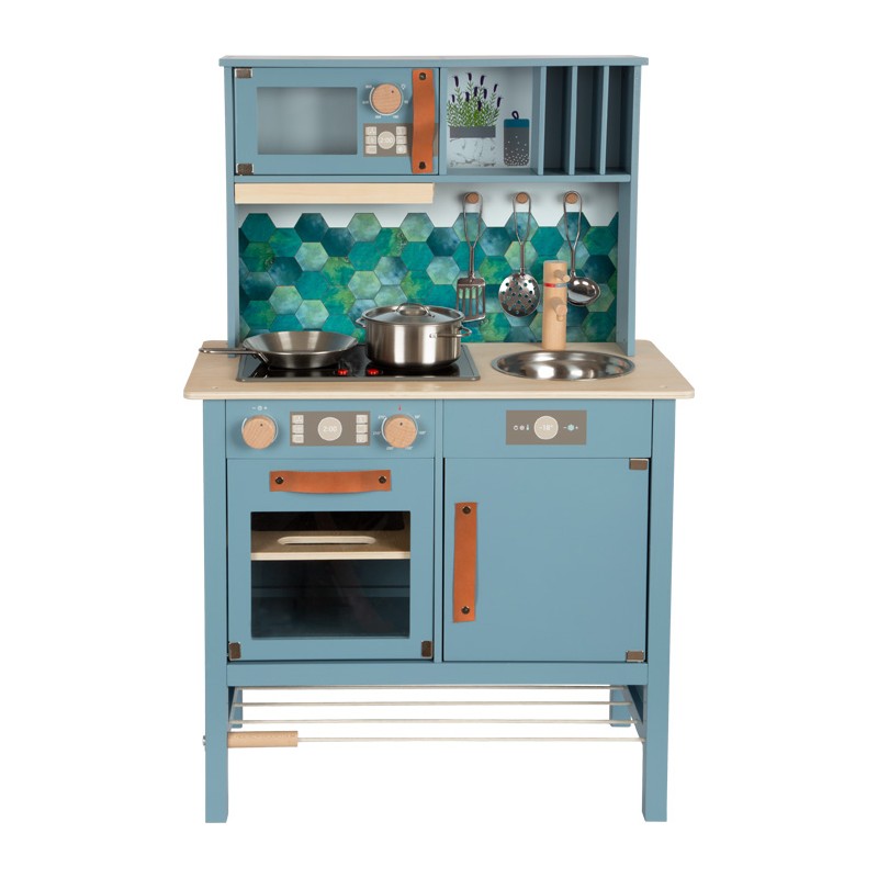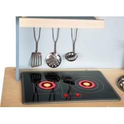 See puidust unistuste köök täidab kõik kokandussoovid! Noored, pürgivad kokad saavad siin tõeliselt õitsele puhkeda, samas kui disainiteadlikud vanemad hindavad köögi moodsat välimust, mis muudab selle ideaalseks mitte ainult lastetuppa, vaid ka võluvaks disainielemendiks elutoas. Kriit tahvli jaoks ei kuulu komplekti.
